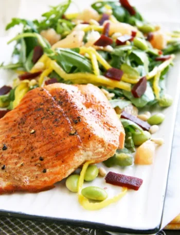 Salmon with Mango, Edamame and Grapefruit Salad (SRC) It’s the taste of the tropics right here…hello summer! Now that it’s “officially …