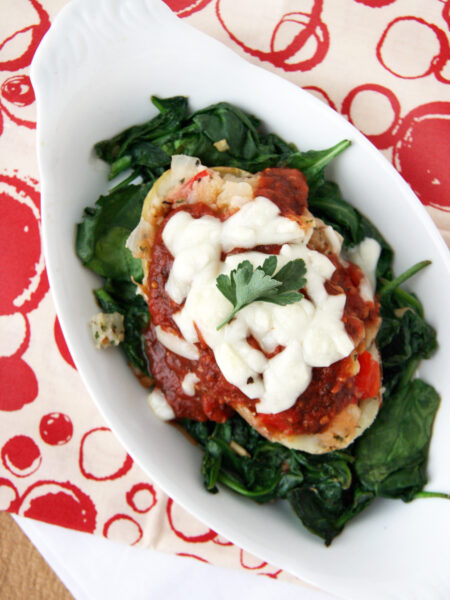 Pizza Potatoes over Sauteed Spinach
