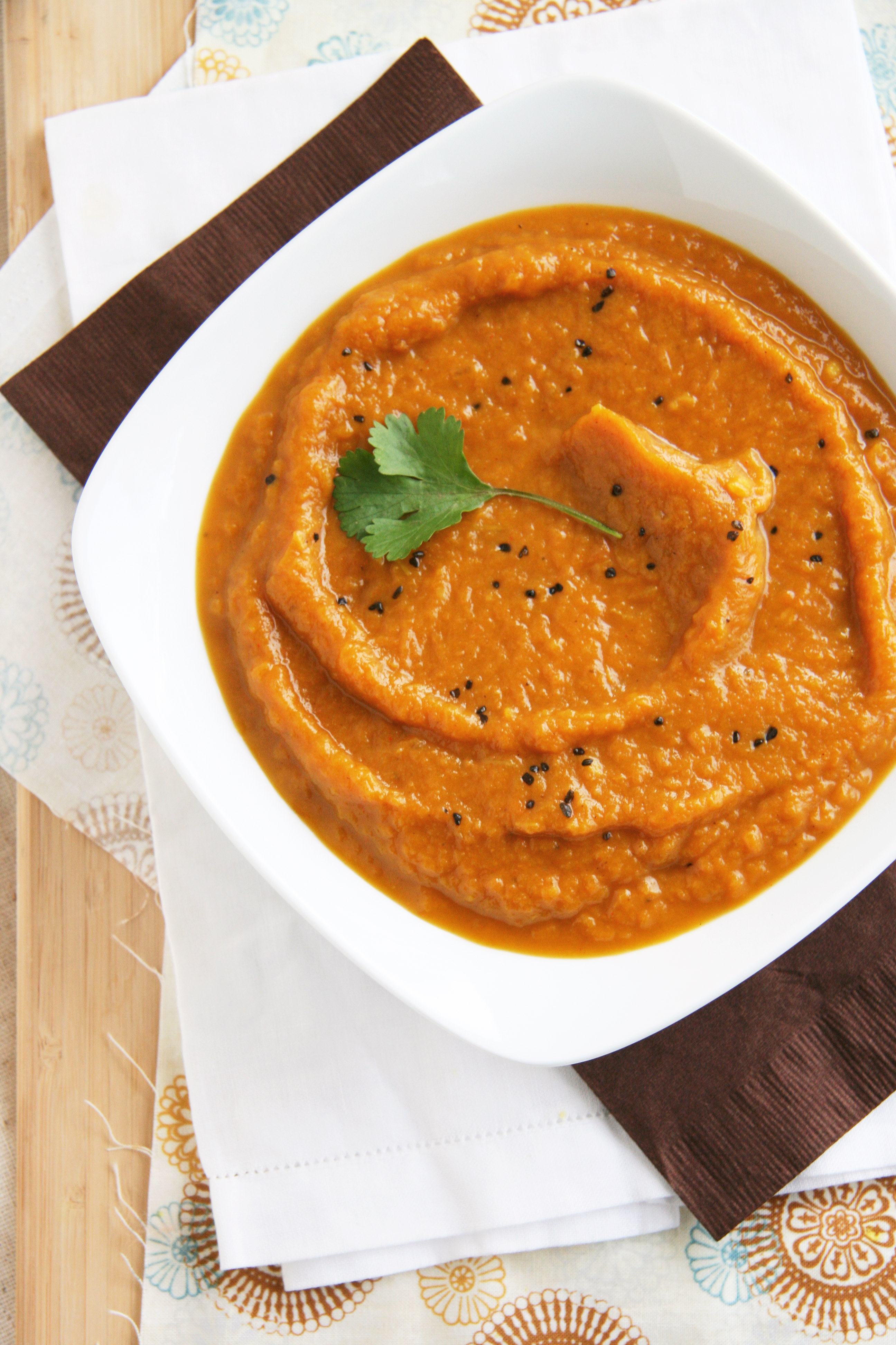 I’ve been craving (and making) all kinds of soup this Fall…I seriously need to start taking some photos and sharing some of these one-pot creations. I thought I’d kick off my Fall soup repertoire with this Thai Pumpkin Soup that I lightly adapted from Lynsey Lou’s beautiful blog! I was assigned Lynsey’s blog for this month’s Secret Recipe Club and I had a crazy-fun yet difficult time deciding what to make. Her Toasted Coconut Cake with Walnuts and Cranberries made me want to lick my computer screen, and I loved the flavor combination in her Wild Mushroom and Goat Cheese Quesadillas with Cranberry-Pecan Salsa. Hmmm…besides pumpkin, apparently the nut and cranberry combo is also on the brain?!