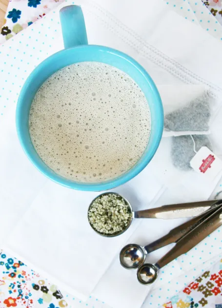 Why not make something nourishing and comforting at the same time? This minty latte has healthy fats from the hemp and cacao butter, peppermint that is soothing for your tummy and digestion, and contains a little protein and fiber from the hemp hearts. This latte is also caffeine-free (unless you use a green or black tea) so you can enjoy a cuppa as a treat after dinner if you’d like!